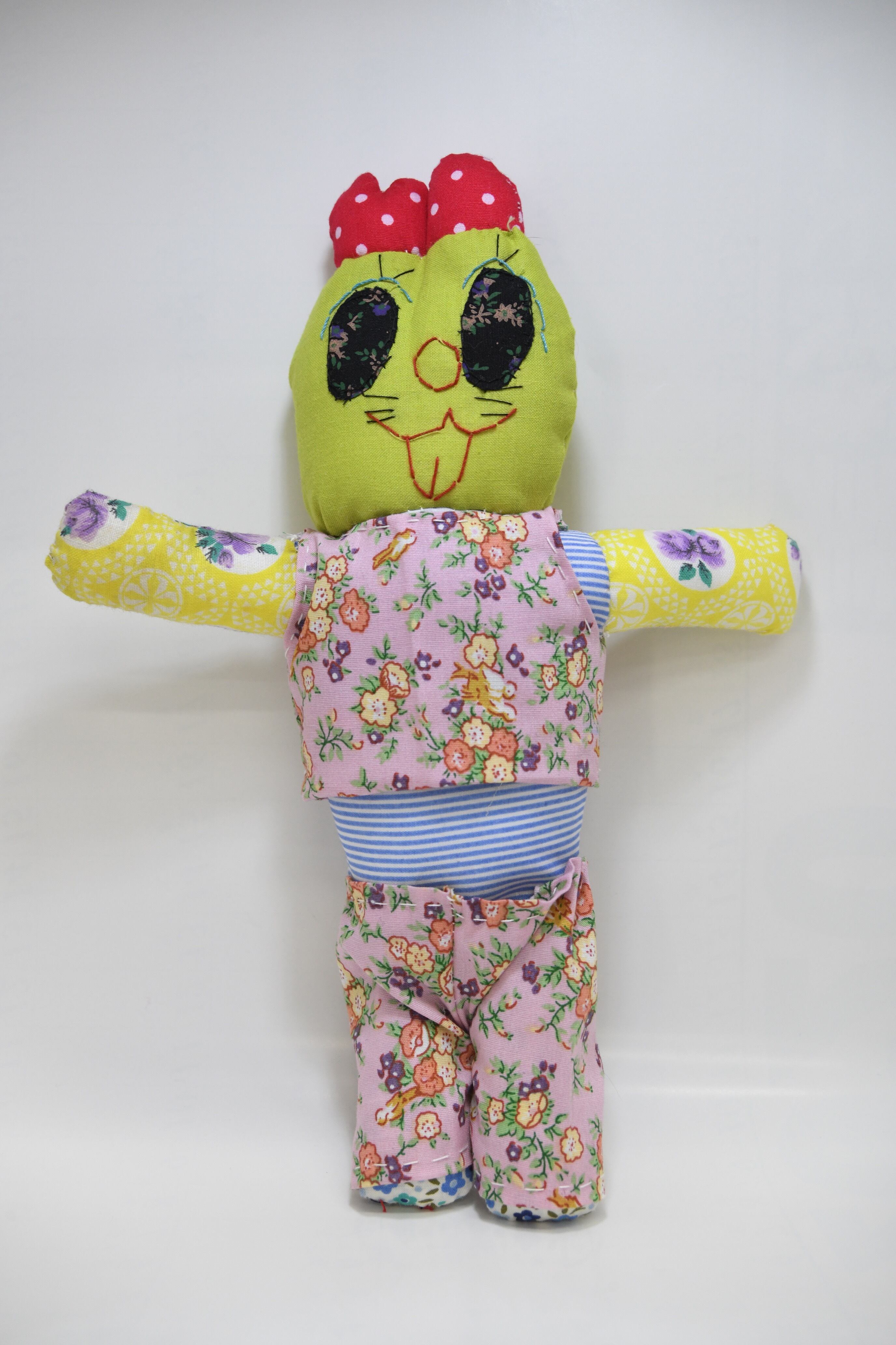 端切れを使い、顔や手足などのパーツごとに布を変えて手縫いで作り上げます。その後、レースやフリルなどをつけたり、ボタンやアクセサリーなどをつけ、洋服を完成させます。